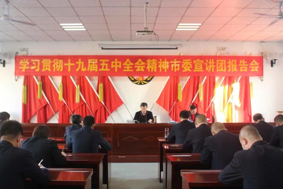 12月4日,學(xué)習(xí)貫徹十九屆五中全會(huì)市委宣講團(tuán)報(bào)告會(huì)在山西大正保安服務(wù)有限公司進(jìn)行。市委宣講團(tuán)成員、市工信局(國(guó)資委)黨委書(shū)記、局長(zhǎng)吳瑞峰作宣講報(bào)告。公司黨委書(shū)記、董事長(zhǎng)張躍生主持報(bào)告會(huì)。黨委副書(shū)記、總經(jīng)理趙培宏等在家領(lǐng)導(dǎo)班子成員及中層副職以上干部50余人參加。吳瑞峰同志從深刻認(rèn)識(shí)我國(guó)進(jìn)入新發(fā)展階段的重大意義、有利條件和重要特征以及準(zhǔn)確把握2035年遠(yuǎn)景目標(biāo)和“十四五”時(shí)期我國(guó)發(fā)展的指導(dǎo)方針、主要目標(biāo)、重點(diǎn)任務(wù)等五個(gè)方面內(nèi)容,結(jié)合當(dāng)前形勢(shì)及國(guó)資國(guó)企改革發(fā)展實(shí)際,對(duì)黨的十九屆五中全會(huì)精神進(jìn)行了深入淺出、全面細(xì)致的宣講。