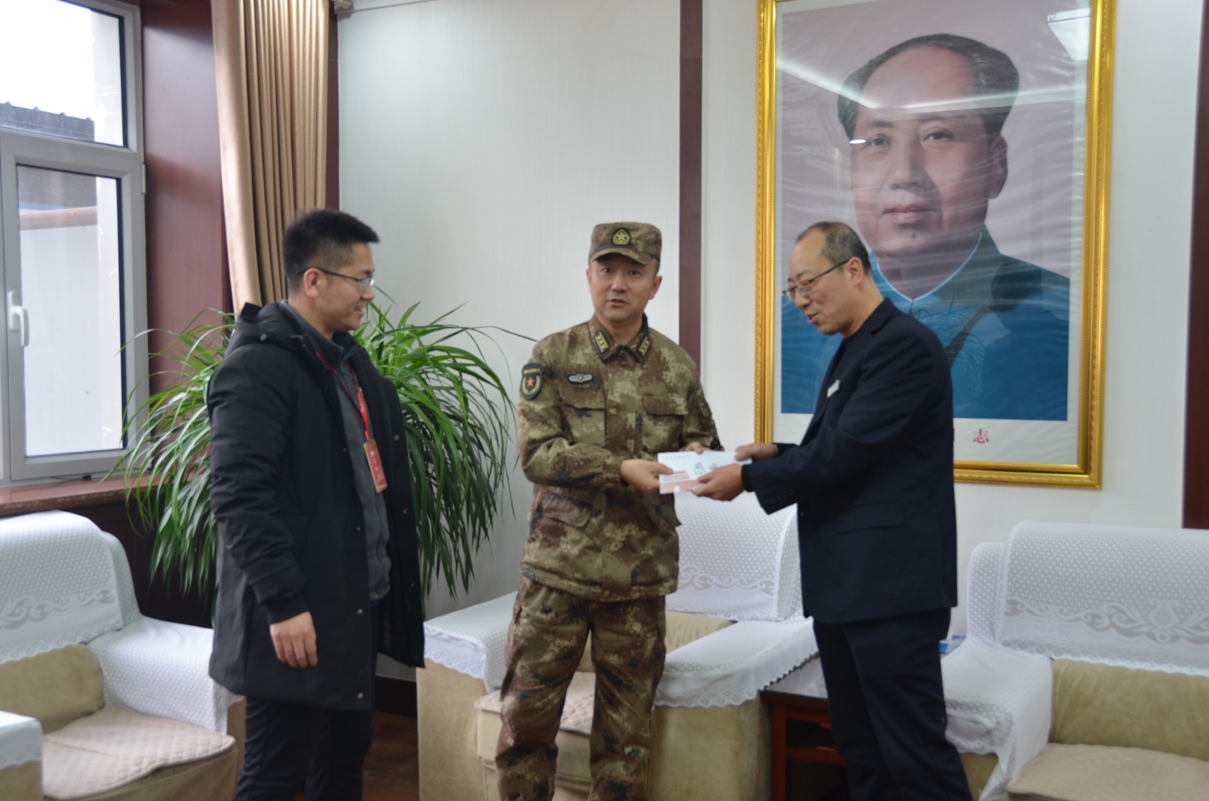 2月10日,忻府區(qū)人武部部長(zhǎng)李強(qiáng)和忻州古城相關(guān)負(fù)責(zé)人一行五人為物業(yè)公司民兵應(yīng)急連送來(lái)一封熱情洋溢的感謝信,與集團(tuán)公司黨委委員、副總經(jīng)理王明生等領(lǐng)導(dǎo)座談交流。