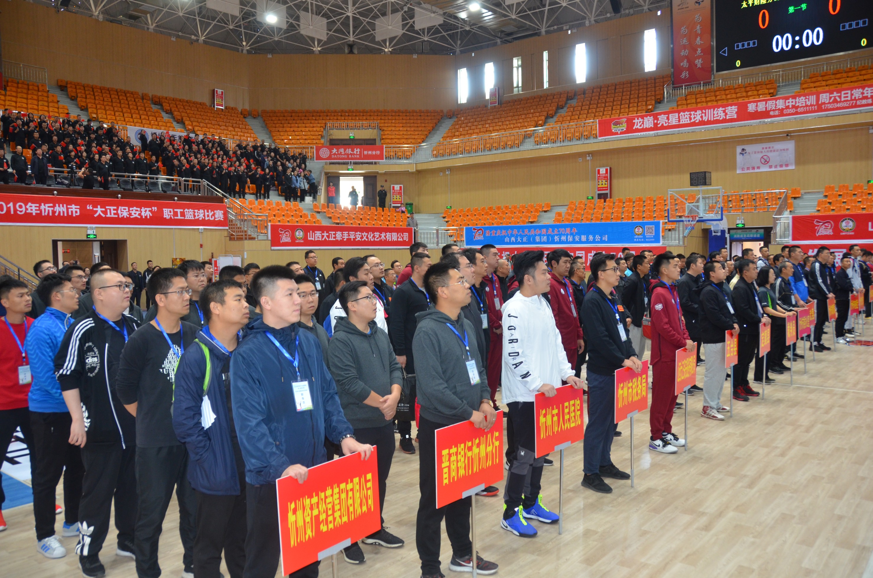 市體育局局長張志杰出席儀式并宣布2019年忻州市“大正保安杯”職工籃球賽開幕,集團(tuán)公司黨委書記、董事長張躍生、市體育局副局長郭彬、集團(tuán)公司黨委副書記、副總經(jīng)理陳志平、市文旅局副調(diào)研員孫新平等領(lǐng)導(dǎo)出席儀式,市體育局副局長王悅主持儀式。參賽代表隊(duì)、社會(huì)各界群眾代表及集團(tuán)公司所屬各分公司員工500余人參加儀式。
