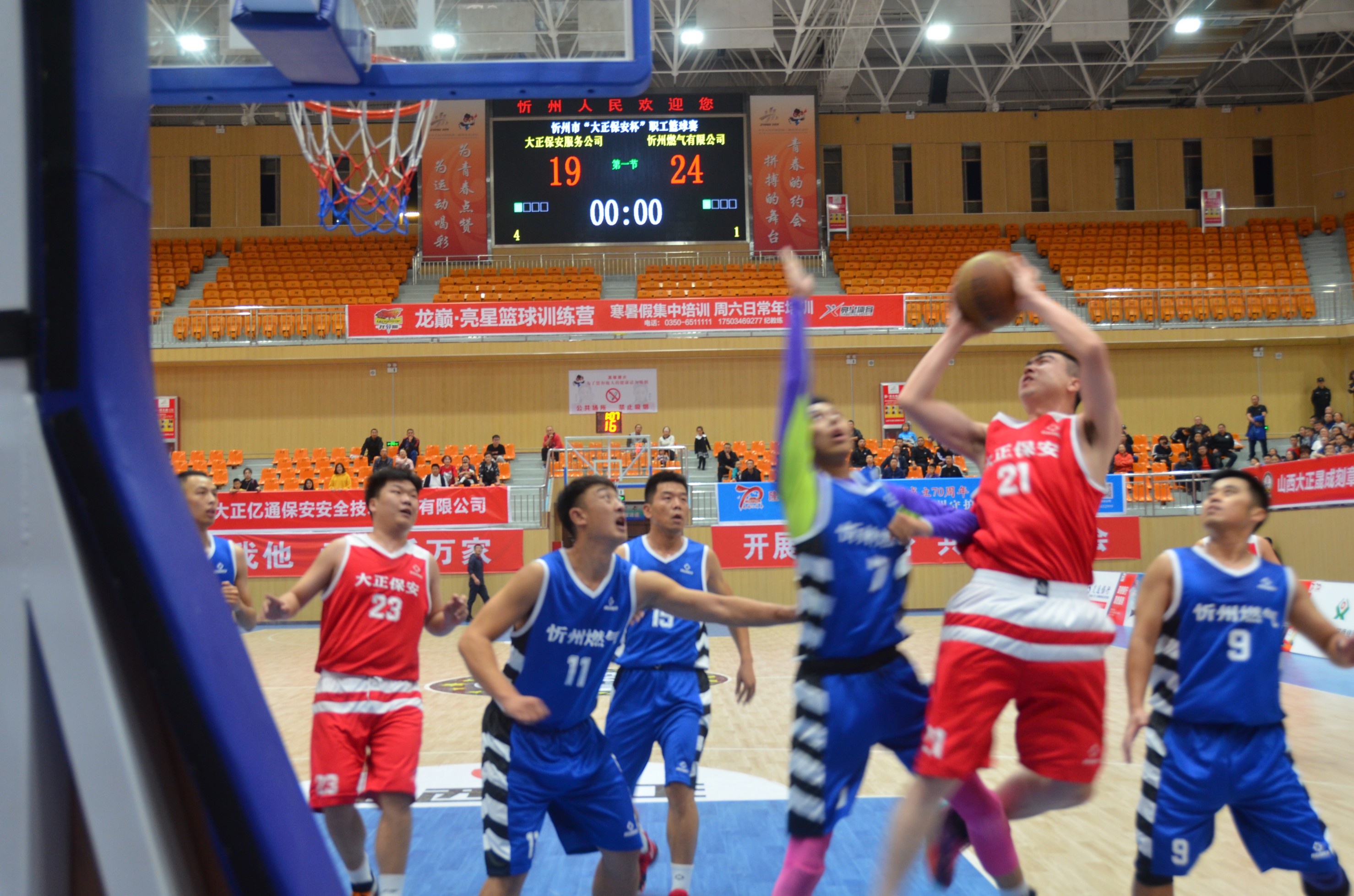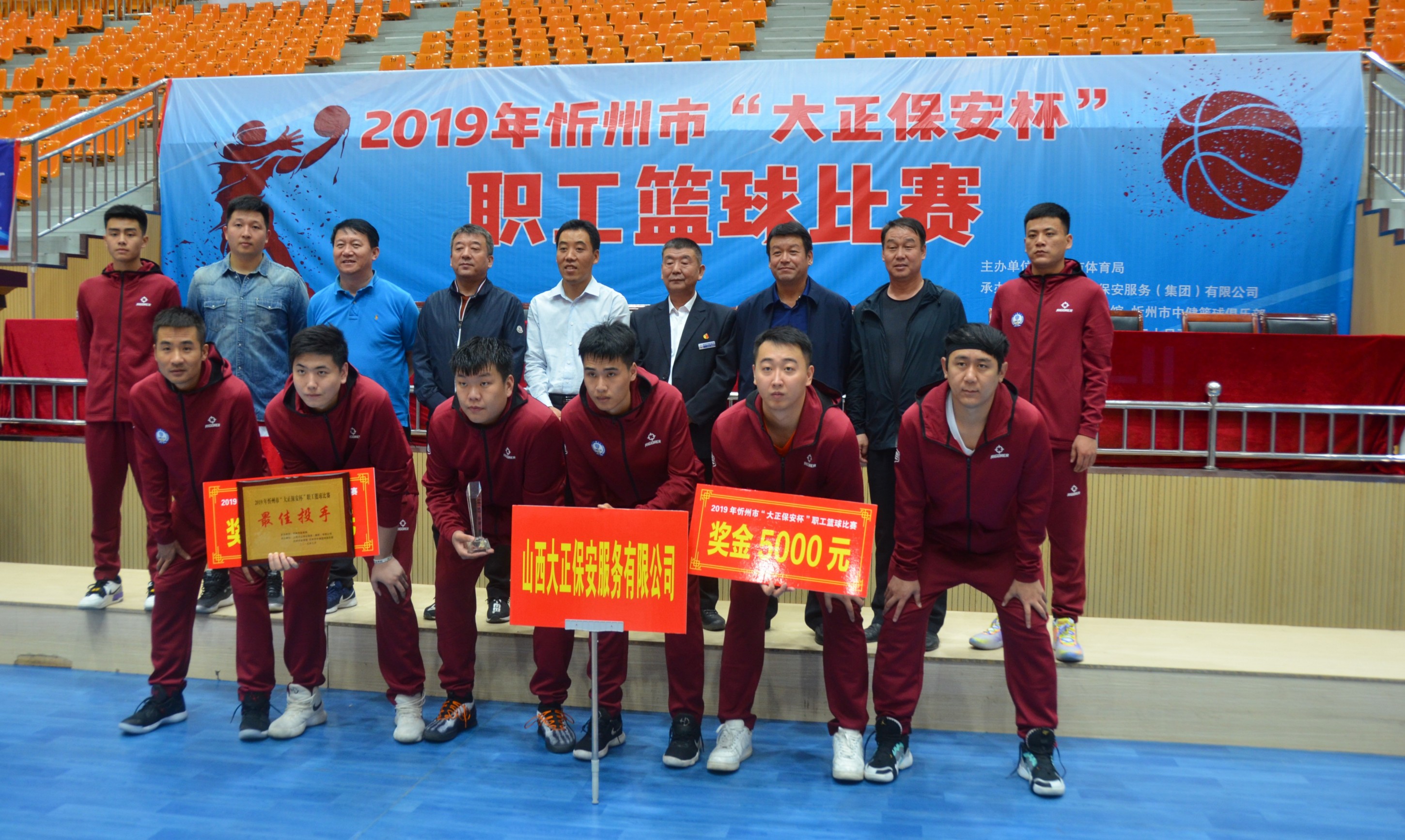 9月26日晚,由忻州市體育局主辦,山西大正保安服務(wù)(集團)有限公司等承辦的2019年忻州市“大正保安杯”職工籃球比賽圓滿落幕。山西大正保安職工籃球隊惜敗于忻州市燃氣有限公司獲得第二名,我公司籃球隊李濤獲得本次賽事的最佳投手獎。張躍生、陳志平、趙培宏、王明生、邢春生等公司領(lǐng)導(dǎo)與300余名職工現(xiàn)場觀賽,為公司籃球健兒鼓勵助威。