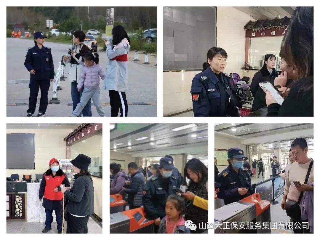 大正保安集團公司的女保安隊員們,正是通過她們不懈的努力和辛勤的付出,讓全國各地的游客度過一個快樂、祥和的“兩節(jié)”,用她們的勇敢和堅韌,應(yīng)對著各種惡劣的氣候和復(fù)雜的勤務(wù),把五臺山景區(qū)變?yōu)橐粋平安、有序、快樂的旅游勝地。此次勤務(wù)時間長,壓力大,但她們用微笑服務(wù)保持始終。無論是引導(dǎo)游客,檢查安全設(shè)施,還是處理游客投訴,她們總能以親切和友好的態(tài)度面對每一個人。她們默默地工作著,時刻保持專業(yè)素養(yǎng)和良好形象,為游客提供熱情細致的服務(wù)。