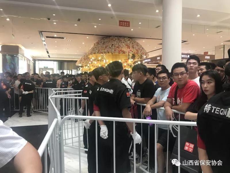 2018年7月15日,美國(guó)NBA著名球星德維恩-韋德“2018年中國(guó)行”品牌代言簽售會(huì)第三站在省會(huì)太原茂業(yè)天地隆重舉行,由于韋德作為籃球明星偶像,在中國(guó)知名度、關(guān)注度、影響力較高,深受青少年球迷的喜愛(ài),粉絲眾多,加之活動(dòng)現(xiàn)場(chǎng)又在人員密集的商場(chǎng)內(nèi)舉辦,不確定因素增猛,安保難度加劇,為確;顒(dòng)安全順利進(jìn)行,按照太原市公安局的安排部署,太原保安服務(wù)有限公司抽調(diào)300余名保安員承接了此次安保任務(wù)。