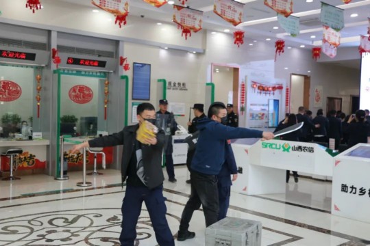 根據(jù)市公安局、銀保監(jiān)局、省市聯(lián)社關(guān)于2023年銀行業(yè)突發(fā)事件應(yīng)急預(yù)案演練文件精神,忻州市農(nóng)商銀行于4月1日按照演練方案,對防爆、防搶、防劫持人質(zhì)等15項突發(fā)事件應(yīng)急處置進行演練,忻州市公安局內(nèi)保、巡特警支隊、直屬分局治安大隊、七一北路派出所及15余名公安干警和大正保安集團20余名守押、安保隊員參加。