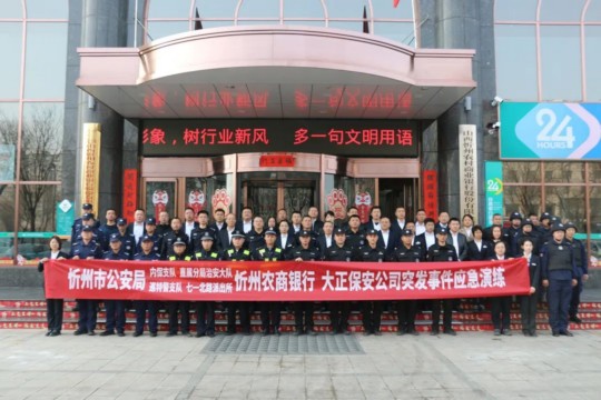忻州市公安局內(nèi)保支隊班煦副支隊長、直屬分局趙紅偉副局長、巡特警支隊一大隊孫華建隊長、治安大隊檀亮副隊長、大正保安集團黨委委員、副總經(jīng)理王明生出席了演練活動。忻州市農(nóng)商行轄內(nèi)46個支行負責(zé)人對演練進行了觀摩。