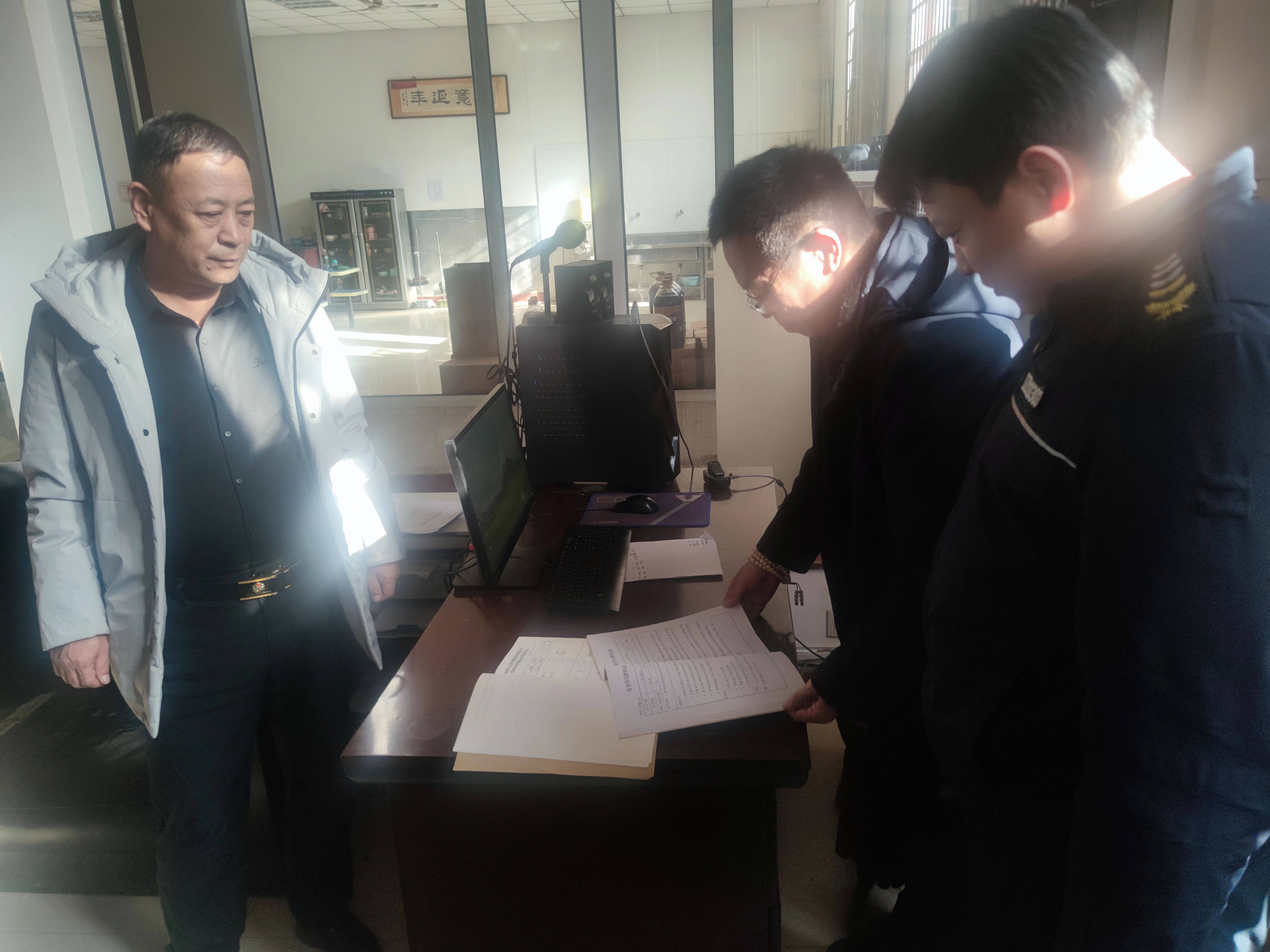 1月15日下午,集團(tuán)公司安全督導(dǎo)檢查組羅鵬生、趙補(bǔ)安等一行赴守押公司四大隊(duì)化北屯中隊(duì)開(kāi)展安全檢查工作。大隊(duì)長(zhǎng)楊貴文、副大隊(duì)長(zhǎng)王玉江、中隊(duì)長(zhǎng)趙紫陽(yáng)及副中隊(duì)長(zhǎng)葛建平全程配合。