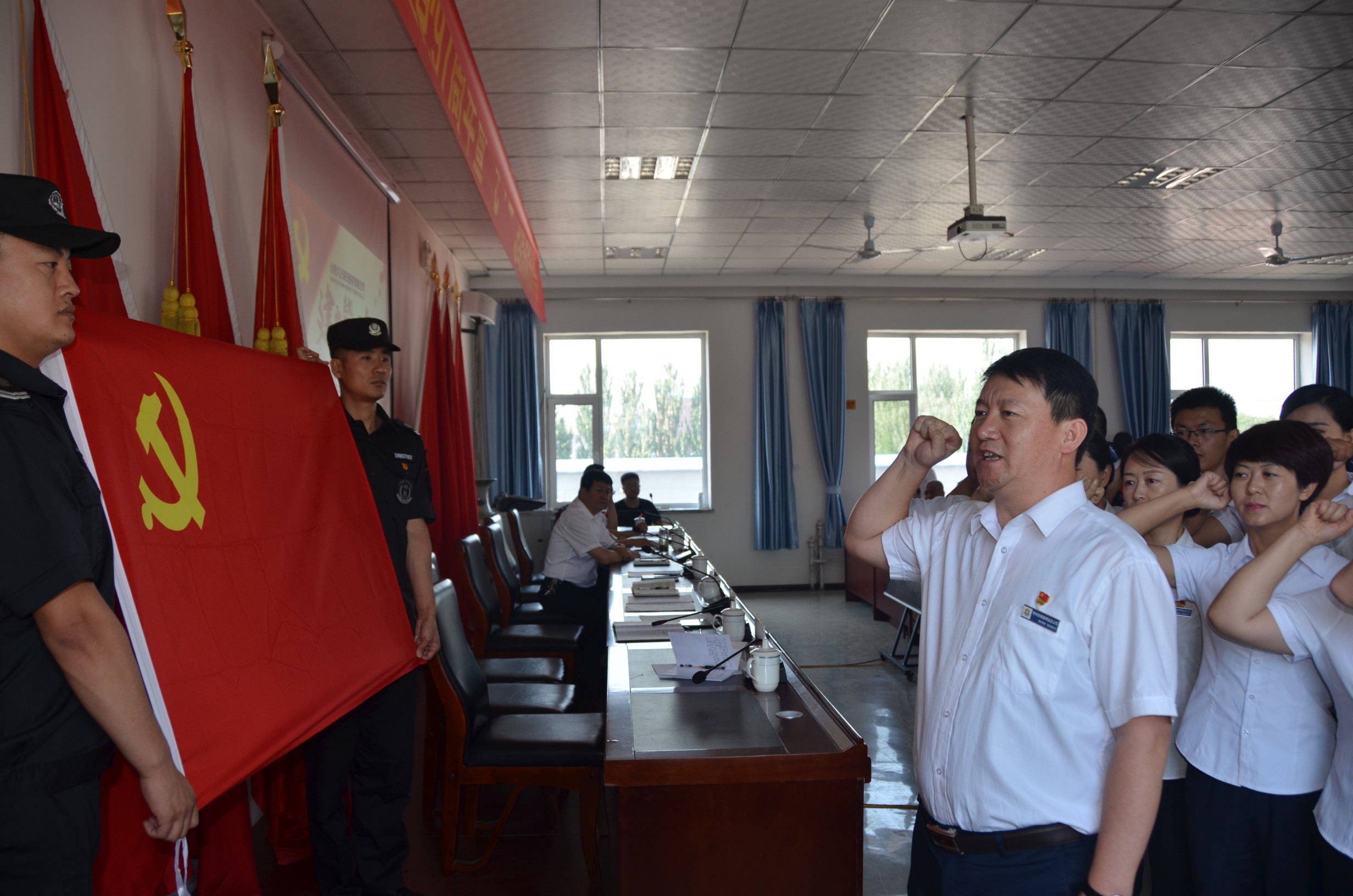 為慶祝建黨97周年,回顧總結公司一年來黨建及其它各項工作取得的新進展、新突破、新成果,安排部署下一階段黨建及其它各項工作,6月30日上午9時,山西大正保安服務有限公司在總公司會議室隆重召開了“慶祝建黨97周年暨“七·一”總結表彰大會”?偣靖鞑块T、各分公司、各縣、市、區(qū)基層中隊分別在主會場、分會場收聽、收看了大會實況。出席大會的領導有張躍生、陳志平、趙培宏、王雙明、邢春生、張瑞東、呂雙明,大會由王明生同志主持。
