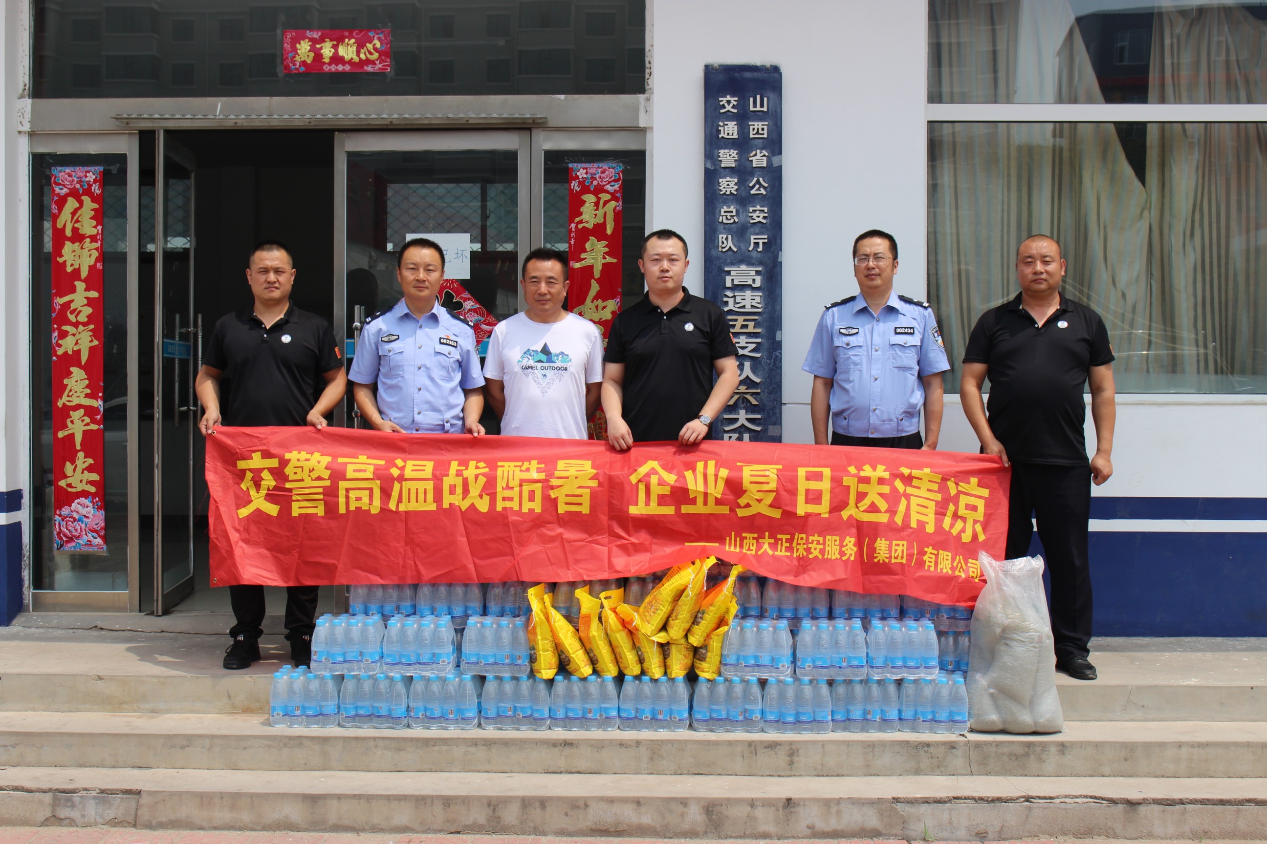 本次山西大正保安服務(wù)(集團(tuán))有限公司共計(jì)慰問34家基層交警,送去礦泉水1560件、小米340袋、綠豆340袋。