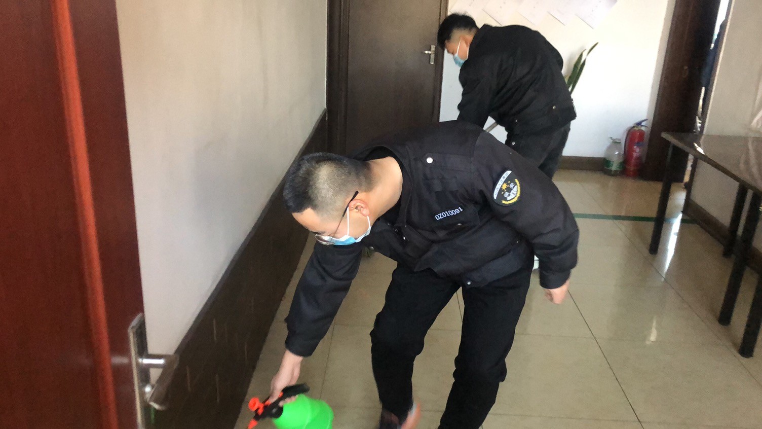 在集體學(xué)習(xí)集團(tuán)公司文件后,張小平要求:一是加強(qiáng)衛(wèi)生知識(shí)宣傳。利用微信群、電子屏、宣傳欄等廣泛宣傳疫情防控衛(wèi)生健康知識(shí),號(hào)召全體監(jiān)控人員養(yǎng)成講衛(wèi)生、愛衛(wèi)生、勤洗手等良好的個(gè)人衛(wèi)生習(xí)慣,做好自我防護(hù)工作。自覺(jué)佩戴口罩、手套,勤洗手、勤消毒、勤通風(fēng),不斷提高自身免疫力和抵抗力。二是嚴(yán)抓環(huán)境衛(wèi)生整治。組織在崗人員全面清理站區(qū)內(nèi)所有部位環(huán)境衛(wèi)生。對(duì)監(jiān)控室、食堂、衛(wèi)生間等進(jìn)行清潔打掃,做到無(wú)死角、無(wú)盲區(qū)。加大清掃頻次,減少垃圾滯留時(shí)間,鏟除病毒生存空間。尤其對(duì)肢體接觸頻繁的門把手、洗手臺(tái)、水龍頭等部位做到重點(diǎn)消毒、反復(fù)擦拭,確保不放過(guò)任何一個(gè)遺漏部位。食堂工作人員每天對(duì)食堂、操作間、庫(kù)房等衛(wèi)生進(jìn)行徹底打掃和清洗,及時(shí)清理廚房垃圾。三是嚴(yán)格做好自身防護(hù)。上崗前由組長(zhǎng)檢查上崗人員手套、口罩等防護(hù)用品的佩戴情況,佩戴不規(guī)范的及時(shí)糾正。各科室加強(qiáng)檢查,對(duì)在崗期間未嚴(yán)格佩戴防護(hù)用品人員嚴(yán)格規(guī)定。四是“堅(jiān)守安保崗位,及時(shí)監(jiān)督警示,真誠(chéng)服務(wù)到位,助力戰(zhàn)“疫”完勝。”監(jiān)控中心日常工作就比較繁重,監(jiān)控、核查、布防、撤防、登記、提示等,24小時(shí)的值守。在人員緊張的情況下,通過(guò)語(yǔ)音呼叫對(duì)講及時(shí)提醒庫(kù)內(nèi)人員戴好口罩、禁止吸煙等情況。簡(jiǎn)潔的話語(yǔ),誠(chéng)摯的提醒,在防控冠狀病毒嚴(yán)峻形勢(shì)下,監(jiān)控中心沒(méi)有一名員工退縮。