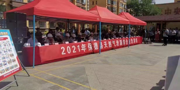 演練科目為上午9時20分,保德縣新城區(qū)惠民家園東區(qū)七號樓燃氣管道盜用燃氣造成室內燃氣大量泄漏,引發(fā)室內燃氣爆燃起火,燃燒引燃廚房內雜物,且爆燃造成的陽臺玻璃破碎散落,周圍群眾較多場面混亂,造成一人輕傷一人被困,現(xiàn)場人員立即向燃氣公司報警。