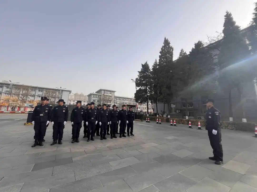 外樹形象。細(xì)節(jié)決定成敗,形象鑄就品質(zhì)。從著裝規(guī)范到言行舉止,從待人接物到崗位值守,每一個(gè)細(xì)節(jié)都嚴(yán)格要求,力求展現(xiàn)出市政府駐勤點(diǎn)保安隊(duì)伍的良好形象。開展隊(duì)列隊(duì)形訓(xùn)練、整齊報(bào)數(shù)、整理著裝、齊步走、跑步走、敬禮等動(dòng)作培訓(xùn)。訓(xùn)練過程中,全體參訓(xùn)人員態(tài)度端正,訓(xùn)練認(rèn)真,動(dòng)作規(guī)范整齊,練出了精氣神。同時(shí)結(jié)合當(dāng)前工作實(shí)際,對(duì)禮節(jié)禮貌、言談舉止、行為規(guī)范等禮儀常識(shí)進(jìn)行培訓(xùn),強(qiáng)調(diào)全體安保人員在工作中明確責(zé)任,規(guī)范言行,用心服務(wù),樹立安保服務(wù)新形象。