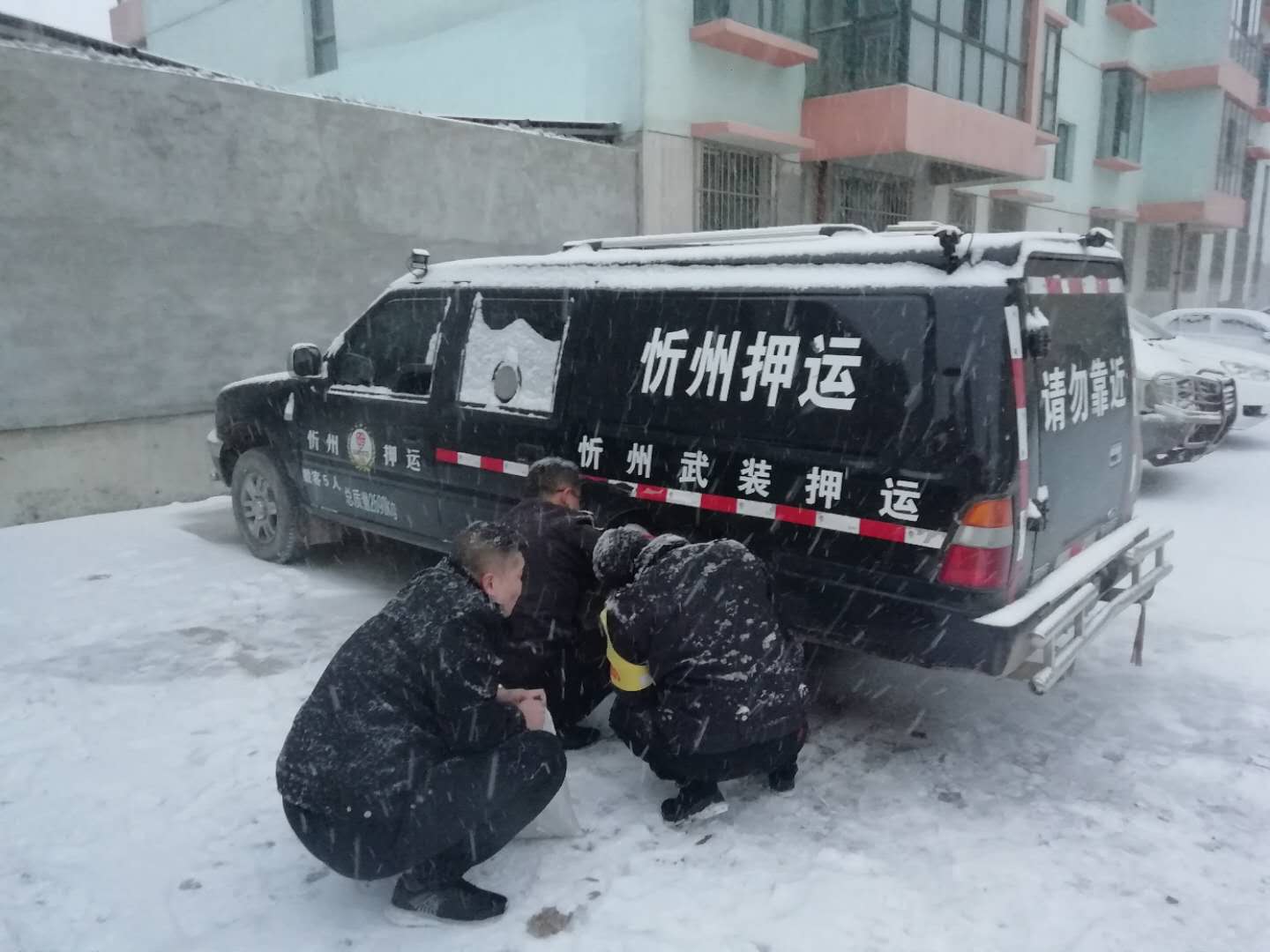 為預(yù)防押運(yùn)車輛發(fā)生交通安全事故,切實(shí)加強(qiáng)降雪天氣條件下行車安全管理工作,確保金融守護(hù)押運(yùn)工作穩(wěn)定,把公司安全工作落到實(shí)處,在開展押運(yùn)工作中,守押基層中隊(duì)根據(jù)總公司處理雨雪天惡劣天氣預(yù)案,做了全面的安全部署,合理安排車輛行車安全,注意檢查車輛安全性能、行車車載設(shè)備及安全帶、防彈頭盔、防彈衣,技術(shù)員隨時(shí)觀察并記錄每輛車的運(yùn)行路線以及周邊情況。車輛出發(fā)前,各車組采取添加防滑鏈,降低行駛速度等安全措施,把好安全關(guān)。中隊(duì)負(fù)責(zé)人和安全員分別跟車,在偏遠(yuǎn)山路地區(qū)與車組共同接受這場風(fēng)雪的考驗(yàn),給隊(duì)員們不怕遇到雨雪困難,有效的克服各種困難增加了堅(jiān)定的信念,安全順利的完成運(yùn)營網(wǎng)點(diǎn)勤務(wù)任務(wù)。