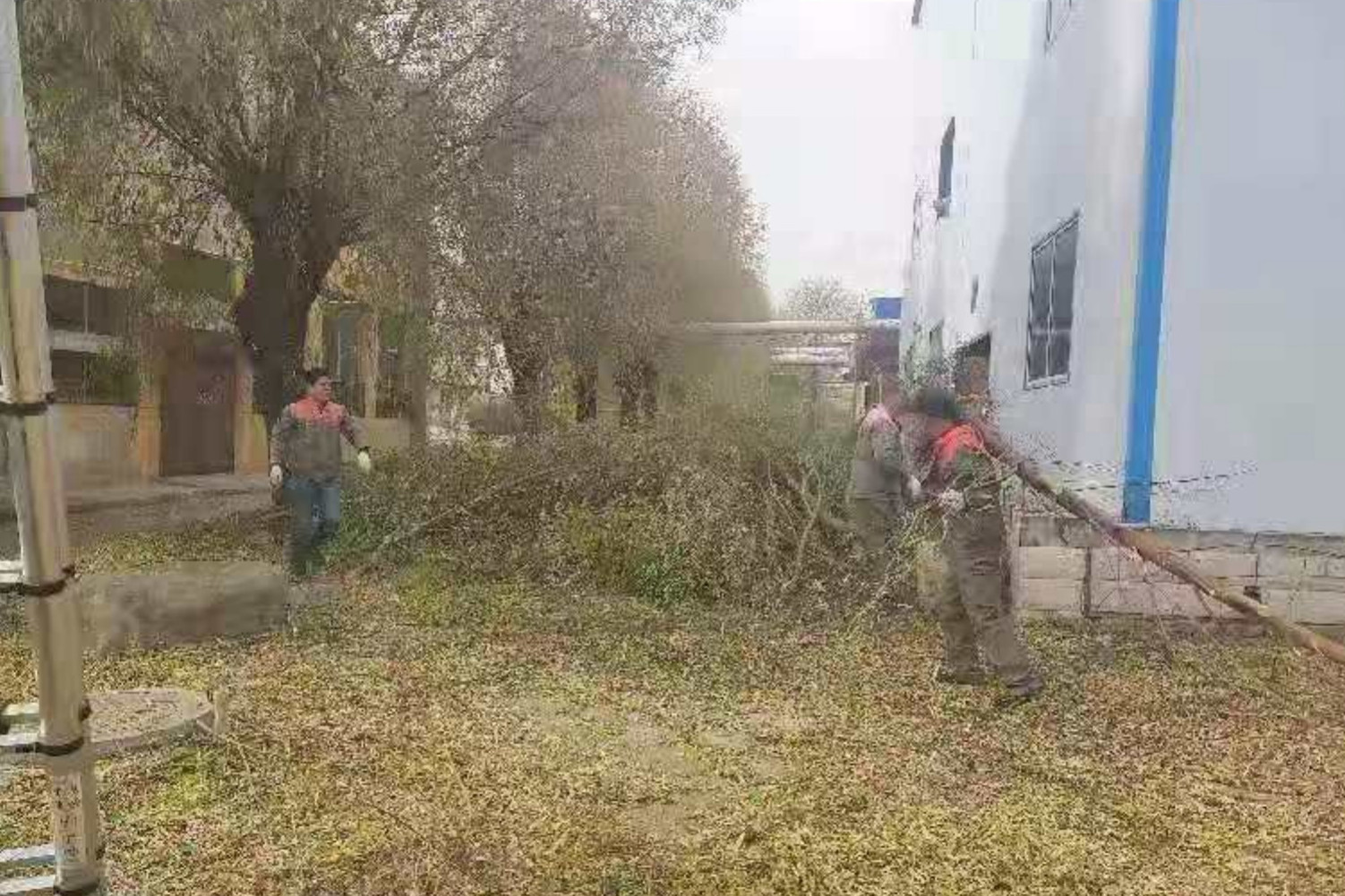 有的同志在樹上使用工具修剪樹枝,有的則在地面撿拾枝葉,還有的用掃把清掃環(huán)境衛(wèi)生,全體參與人員分工協(xié)作,經(jīng)過連續(xù)兩天的緊張工作,院內的樹枝全部修剪完畢,辛勤的勞動換來了衛(wèi)生的整潔,保持了集團總部辦公新址院內的環(huán)境美觀。